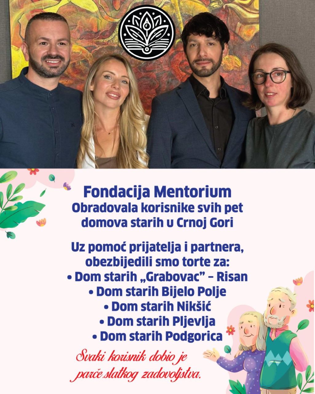 “Njihova vrata i srca bila su nam širom otvorena, a upravo takva podrška čini da ovakve inicijative postanu stvarnost. Zahvaljujemo se i svima koji su pomogli da se ova ideja realizuje. Zajedno pokazujemo da se istinska briga ne mjeri riječima, već konkretnim djelima koja donose osmijeh i osjećaj pripadnosti” saopštili sui z Fondacije uz poruku:Manje obećanja – više ljubavi u praksi, kroz djela koja govore sama za sebe”