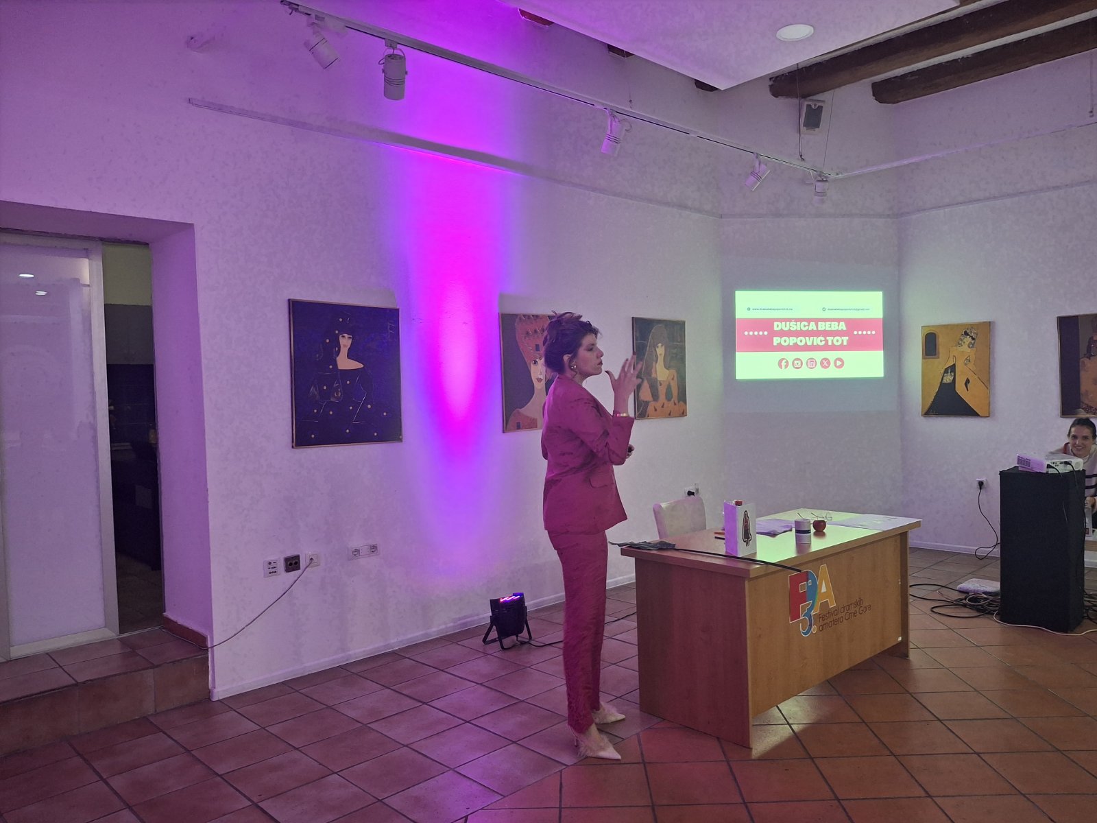 „Dušica Beba Popović Tot je obojana jarkim bojama, sam kostim i šminka oslikavaju i njenu unutrašnjost, ona je slika i prilika današnjih infuensera, a nastala je upravo iz bunta prema svemu što nam se danas plasira. To je žena koja zna najbolje, koja će da vas ubijedi, da vam sjedne na glavu, samo da dokaže da je u pravu“, kazala je Šćepanović.