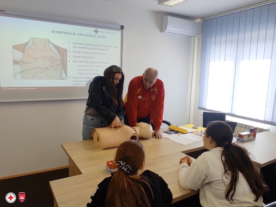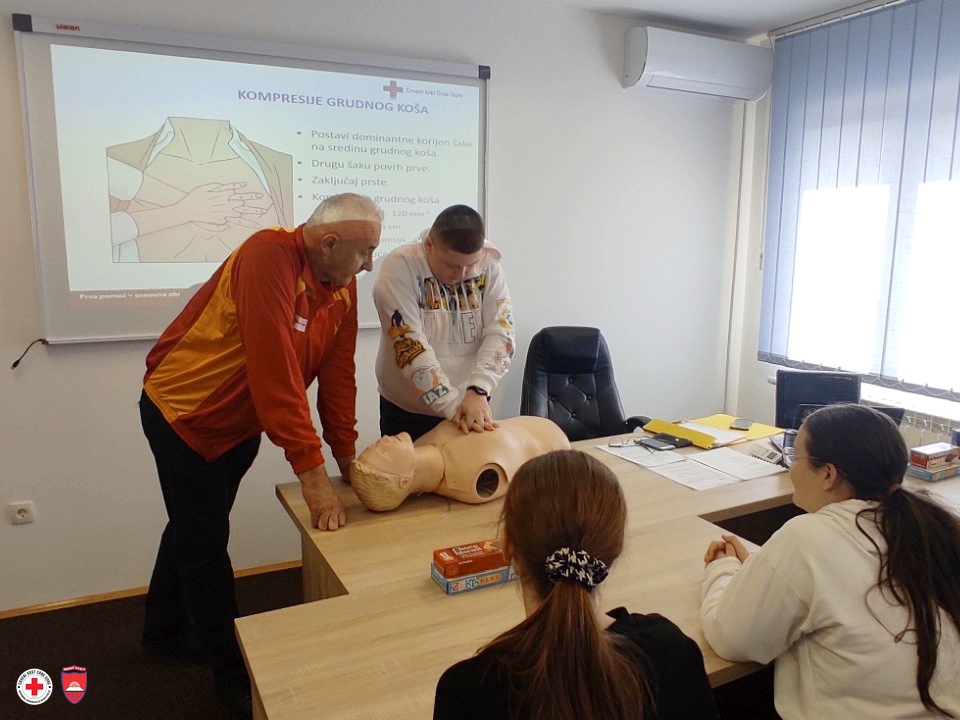 Dodaje i, da su učenici tokom trajanja predavanja bili veoma zainteresovani, interaktivni, a pokazali su osnovno znanje i vještine kod pružanja prve pomoći, dok su im najzanimljivije bile tehnike primjene vještačkog disanja i ponovnog uspostavljanja rada srca.