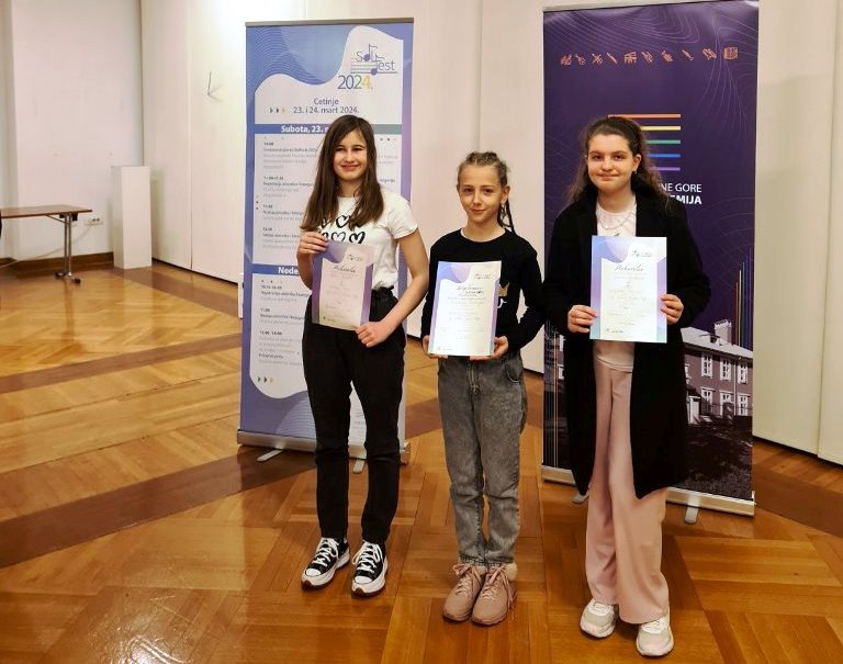 Ksenija Rakonjac, učenica 6. razreda Škole za osnovno muzičko obrazovanje, osvojila je prvo mjesto na 4. Međunarodnom festivalu Solfest na Cetinju, za najbolje izvođenje vježbe prima vista.