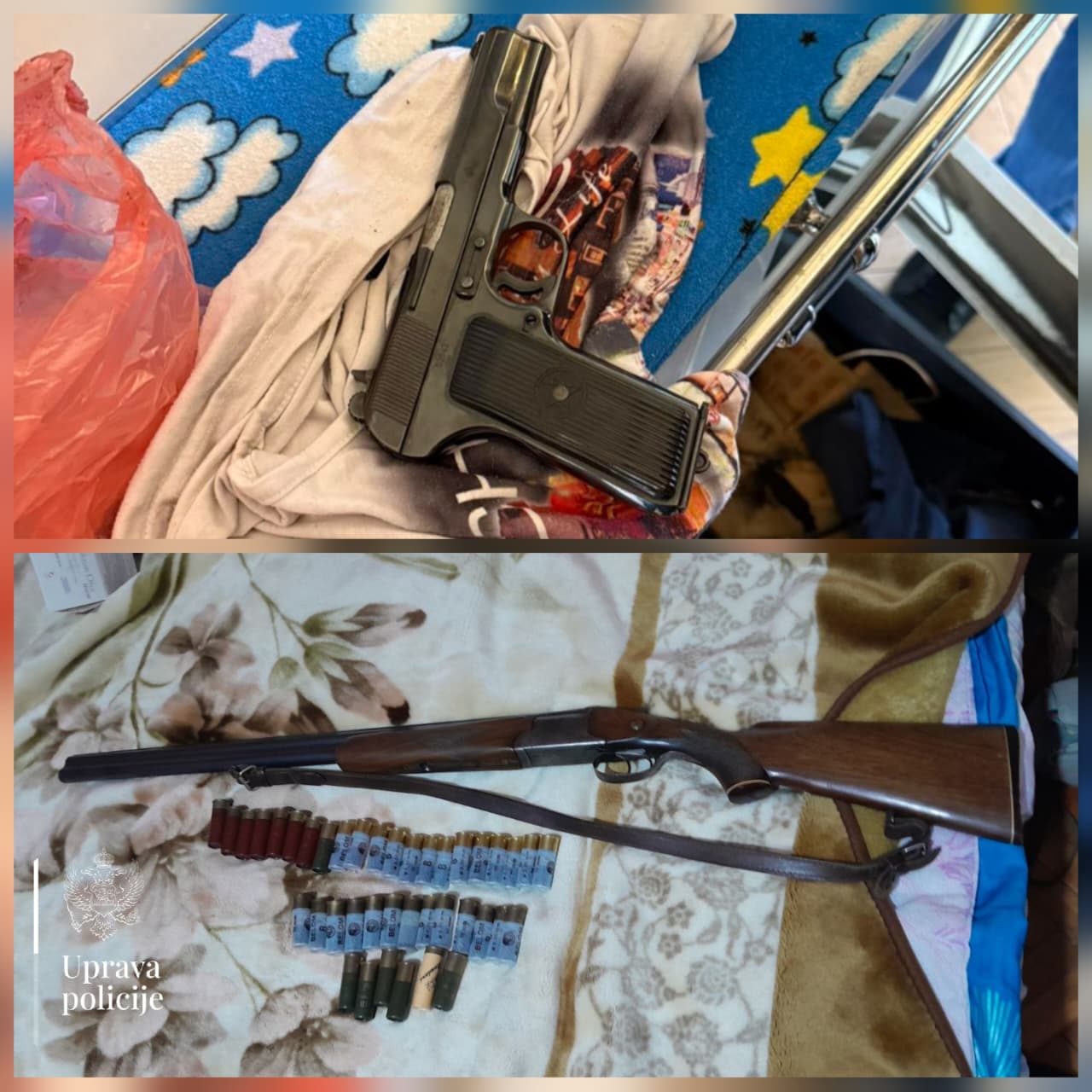Službenici Odjeljenja bezbjednosti Podgorica su izvršili pretres kuća lica R.J.(62) iz Podgorice, na dvije lokacije i tom prilikom pronašli i oduzeli dvije puške od kojih jednu u ilegalnom posjedu i 78 komada municije različite vrste i kalibra.