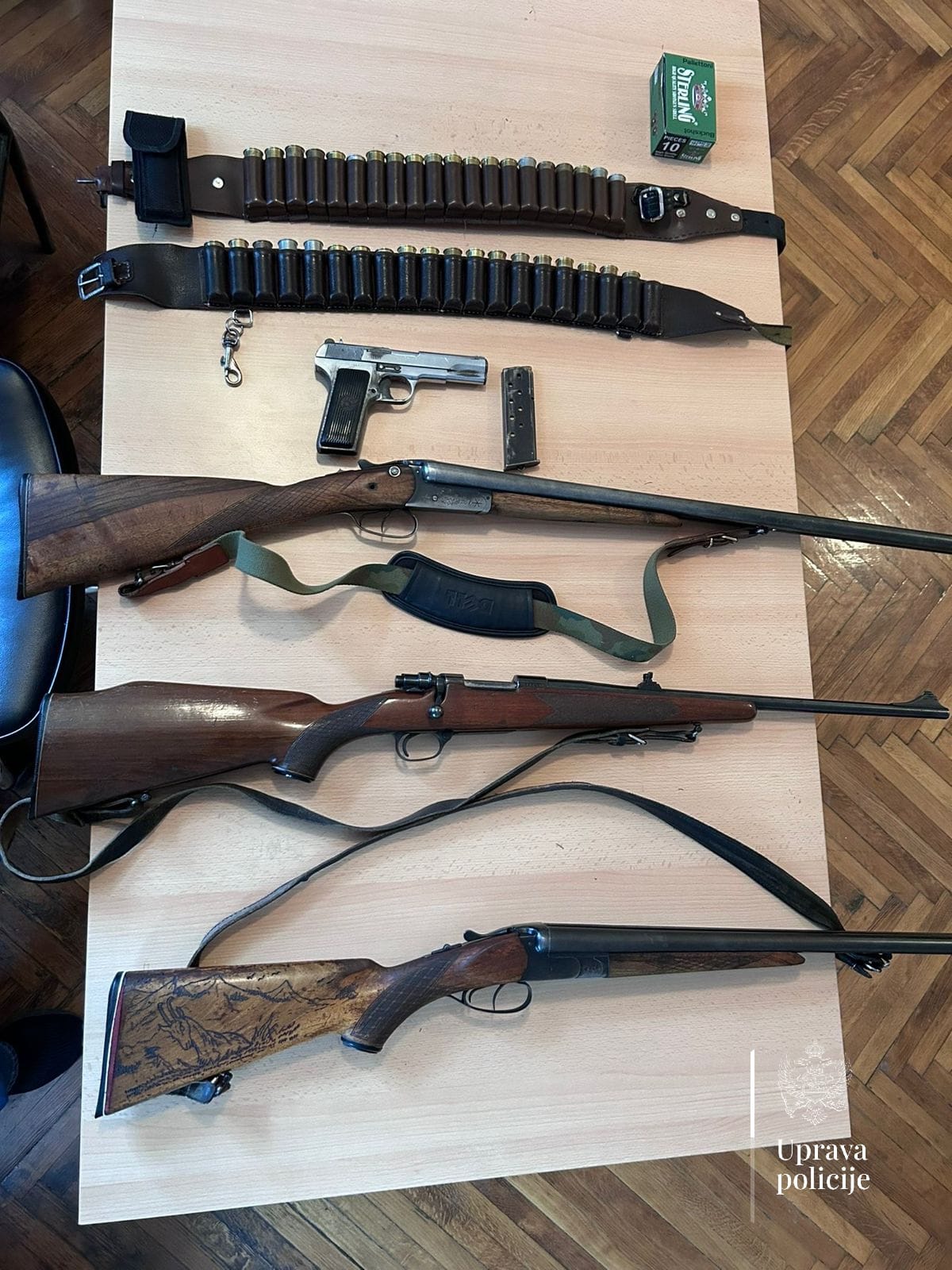 Kod ovog lica su pronađene i oduzete tri puške, pištolj, 55 komada municije i dva redenika za lovačku municiju – sve u ilegalnom posjedu.