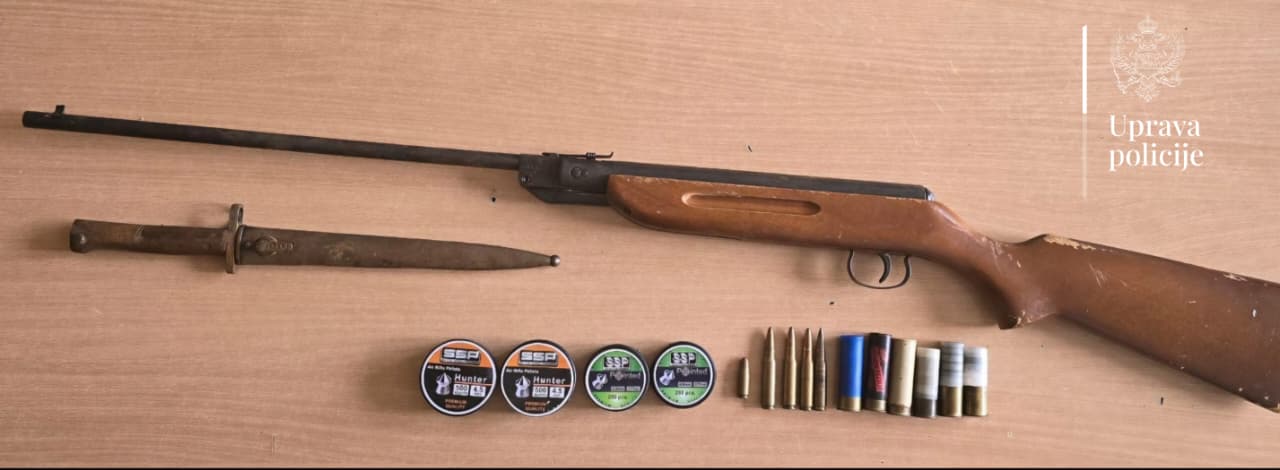 Službenici Regionalnog centra granične policije „Centar“ i Odjeljenja bezbjednosti Nikšić su izvršili pretrese porodičnih kuća i objekata koji se nalaze u mjestu Grahovo kod OIL - A.L. (45) od kojeg je oduzeta vazdušna puška sa tri kutije pripadajuće municije i bajonet, za koje imenovani nije posjedovao odgovarajuću dokumentaciju, dok je kod lica Lj.M. (67) pronađena i oduzeta municija različite vrste i kalibra.